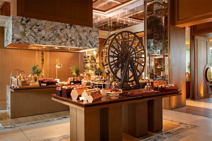 Il cuore dell’esperienza è la convivenza di quattro identità culinarie distinte, ciascuna con la propria firma. Umi Kei porta in tavola l’eleganza della cucina giapponese, con piatti robata come il merluzzo glassato al miso, sushi e preparazioni alla griglia. Madame Li offre i sapori vibranti della cucina Pan-Asiatica, con proposte come il manzo al pepe nero in stile singaporiano. La brasserie mediterranea Mirabelle e The Bombay Club, con la sua cucina indiana speziata e audace, completano un panorama gastronomico di rara ampiezza. L’offerta non si esaurisce qui. Caviale e ostriche vengono serviti direttamente ai tavoli, una fontana di astice e imponenti torri di frutti di mare rappresentano alcune delle scenografie culinarie più memorabili. Alle stazioni di intaglio si trovano il tandoori tomahawk e altri tagli pregiati, mentre i dessert sono firmati dal celebre pasticcere Pierre Hermé, con creazioni iconiche come la Tarte Infiniment Vanille e l’Ispahan. In un contesto in cui il talento culinario internazionale si concentra su pochi chilometri quadrati, è difficile non cogliere quanto Dubai sia diventata un punto di riferimento globale per la ristorazione d’eccellenza.